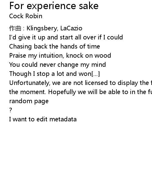 | Song | For experience sake |