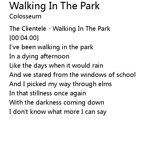 | [00:10.42] | I've been walking in the park |