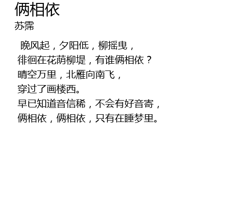 | 徘徊在花荫柳堤,有谁俩相依? | |