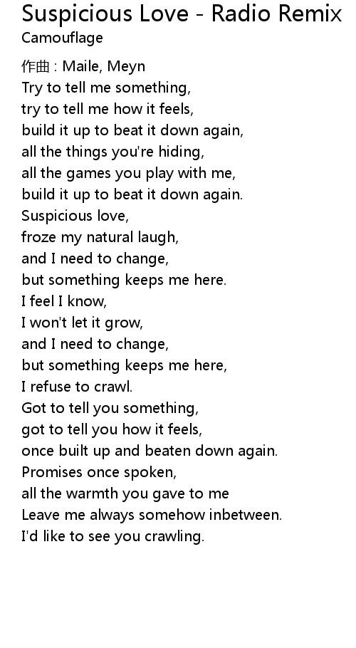 | Song | Suspicious Love - Radio Remix |