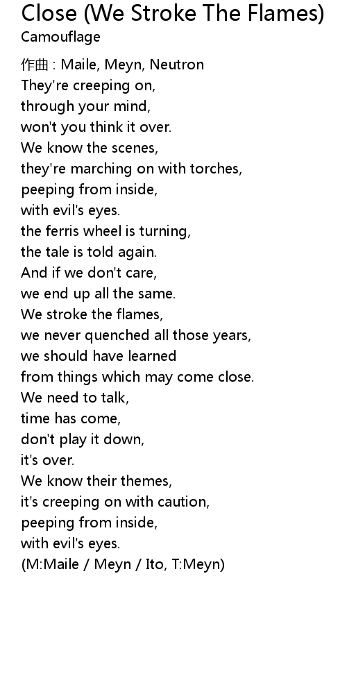 | Song | Close (We Stroke The Flames) |