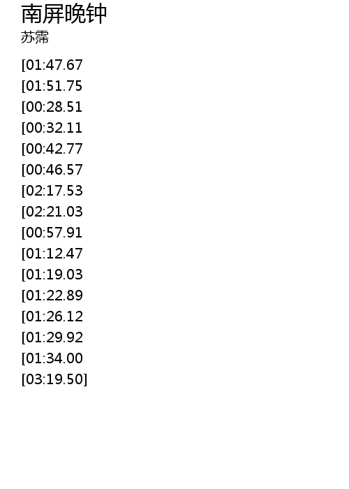 | [02:31.94][02:17.53][01:05.28][00:50.79] | 南屏晚钟 |