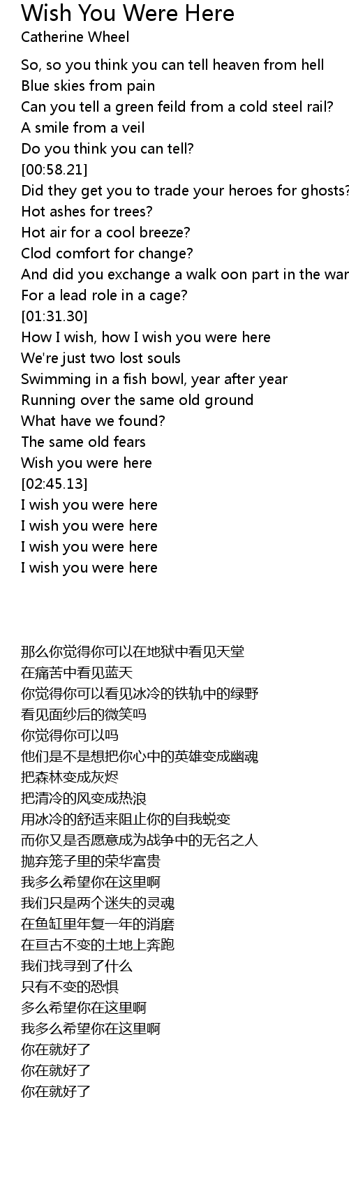 I wish you were here |