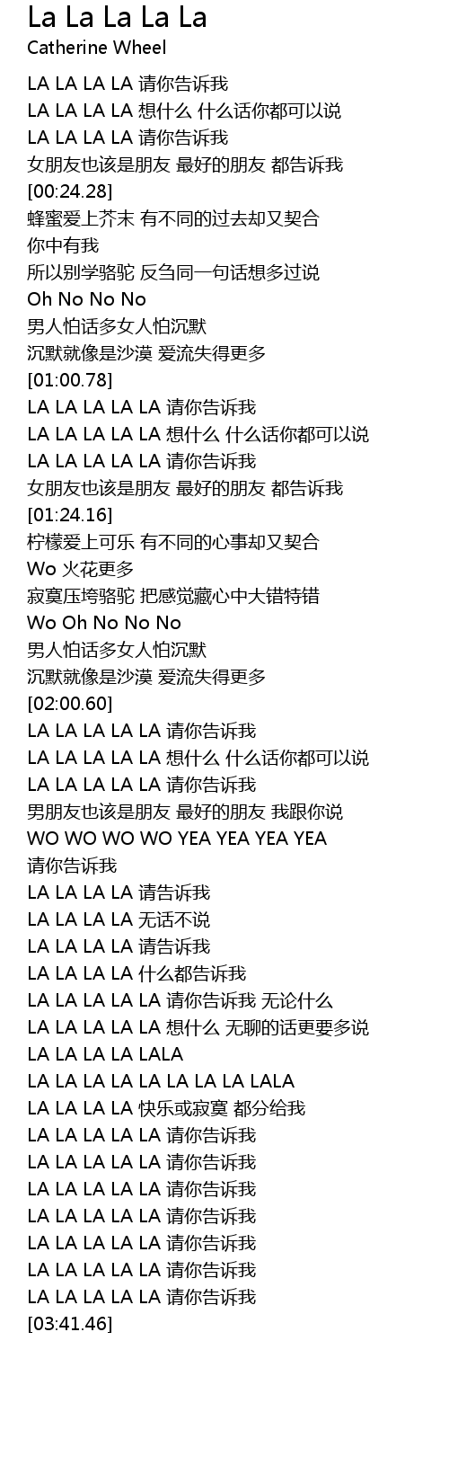 | [03:22.91] | LA LA LA LA LA 请你告诉我 |