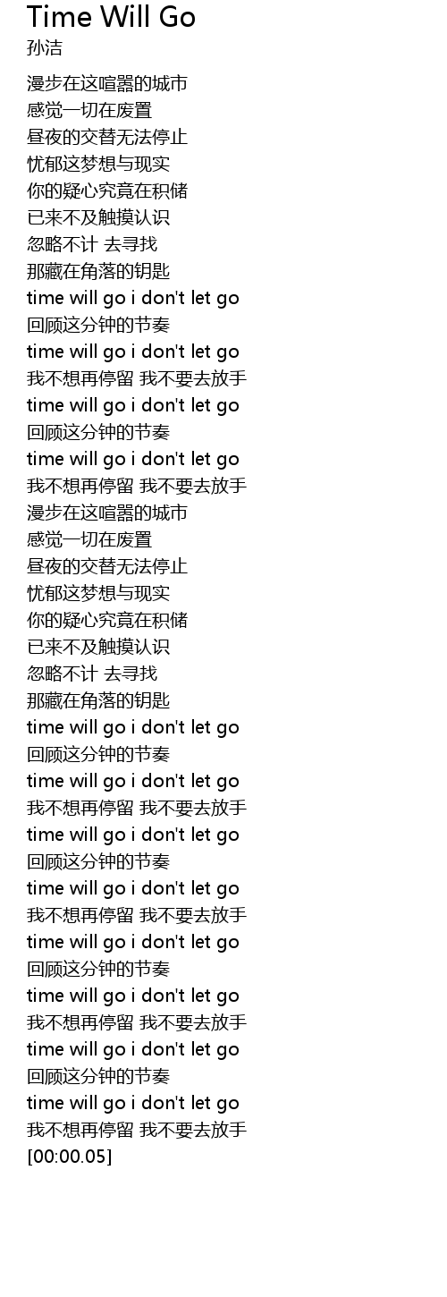 | [01:23.40] | wǒ bù xiǎng zài tíng liú wǒ bú yào qù fàng shǒu |