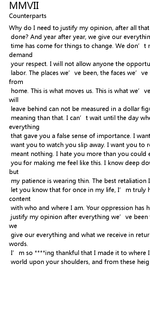 | done? And year after year, we give our everything to get nothing in return. The | |
