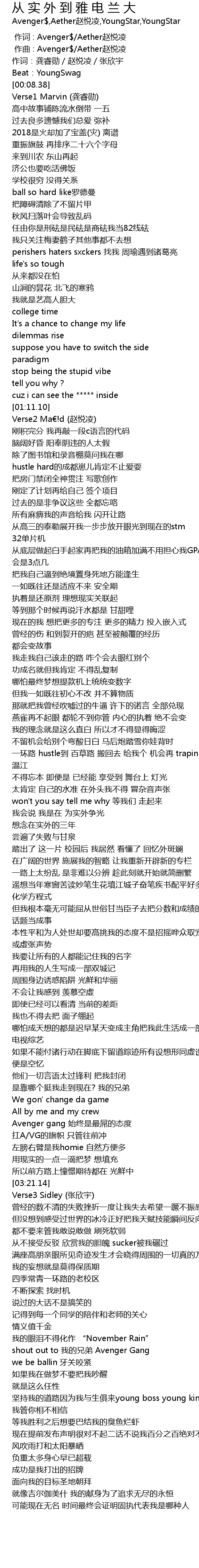 | [03:13.26] | Avenger gang 始终是最屌的态度 |