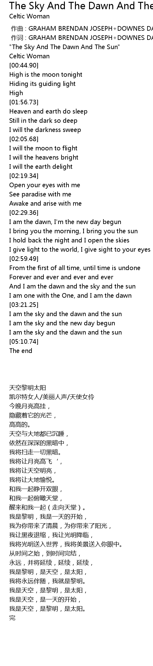 | [00:00.54] | "The Sky And The Dawn And The Sun" |
