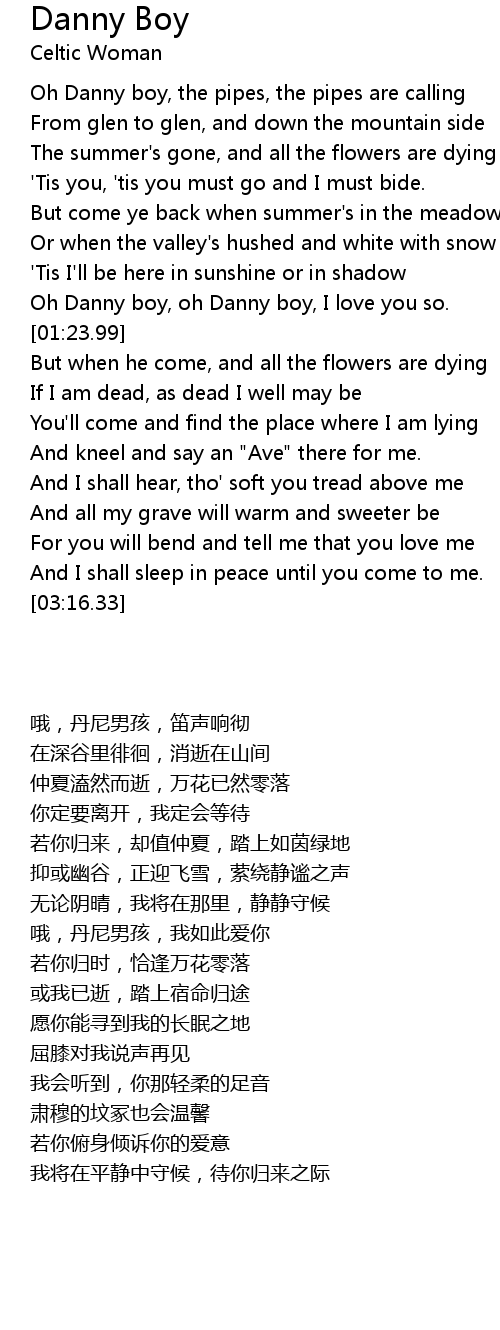 Oh Danny boy, oh Danny boy, I love you so. |