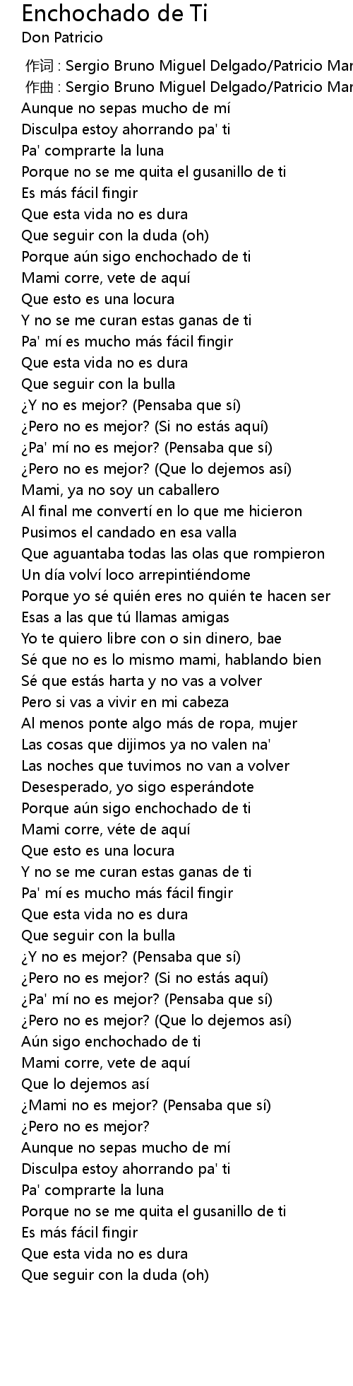 | [00:41.41] | Y no se me curan estas ganas de ti |