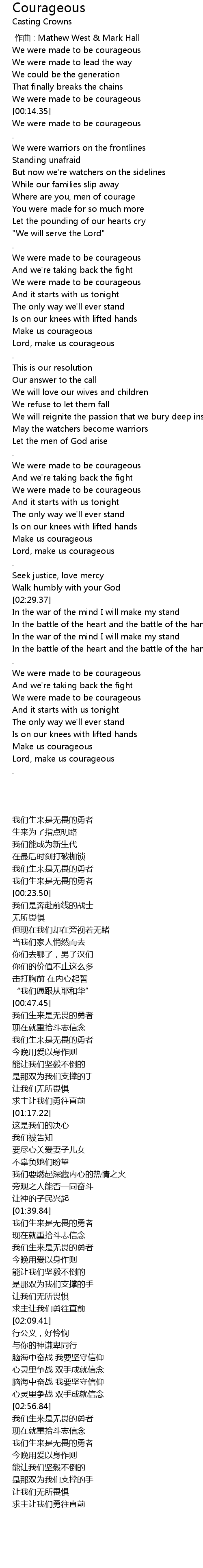 | [00:00.00] | 作曲 : Mathew West & Mark Hall |