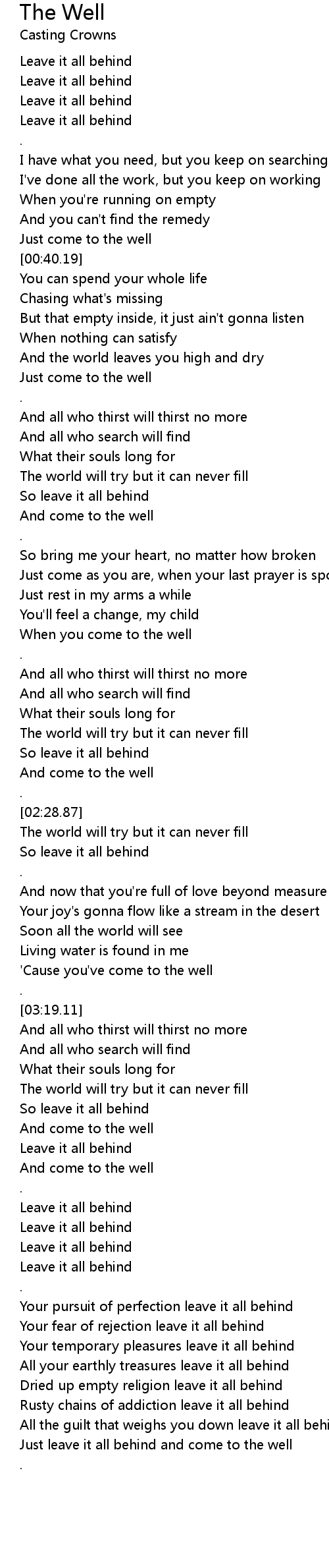 Just leave it all behind and come to the well |