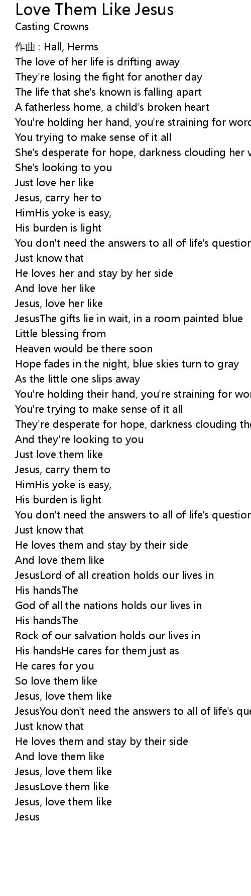 | Jesus, love them like | |