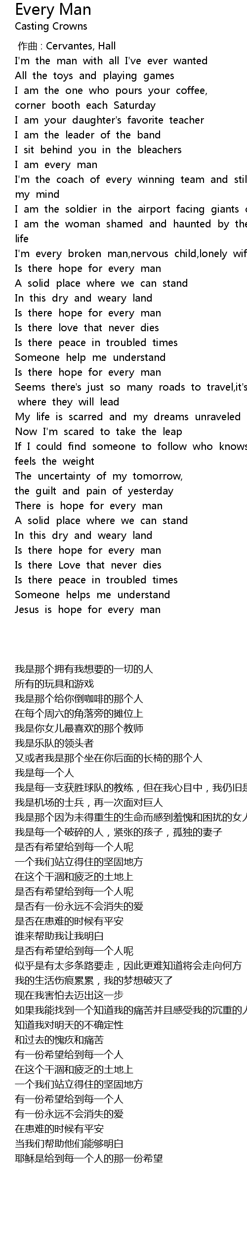 | [01:16.04] | I' m every broken man, nervous child, lonely wife |
