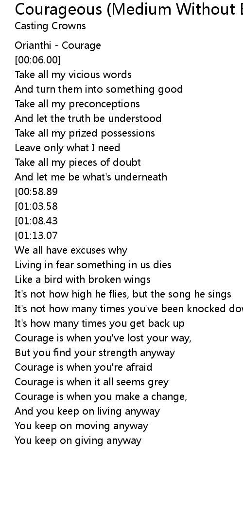 Courageous (Medium Without Background Vocals) - [Performance Track] Lyrics