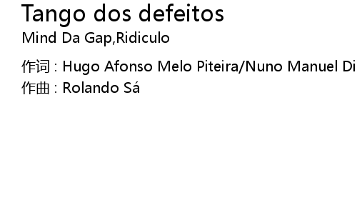 | 作词 : Hugo Afonso Melo Piteira/Nuno Manuel Dias Carneiro | |