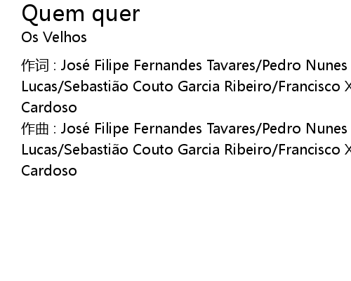 作词 : José Filipe Fernandes Tavares/Pedro Nunes da Ponte Galvão Lucas/Sebastião Couto Garcia Ribeiro/Francisco Xavier Palma Coelho Cordovil Cardoso