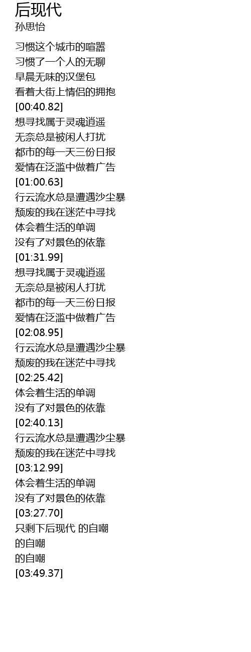 | [03:30.83] | 只剩下后现代 的自嘲 |