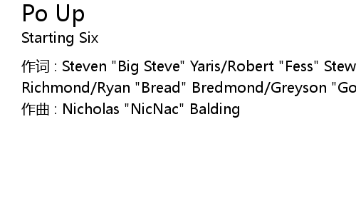 | 作词 : Steven "Big Steve" Yaris/Robert "Fess" Stewart/Jared "Riggsz" Richmond/Ryan "Bread" Bredmond/Greyson "Goose" Tarantino | |