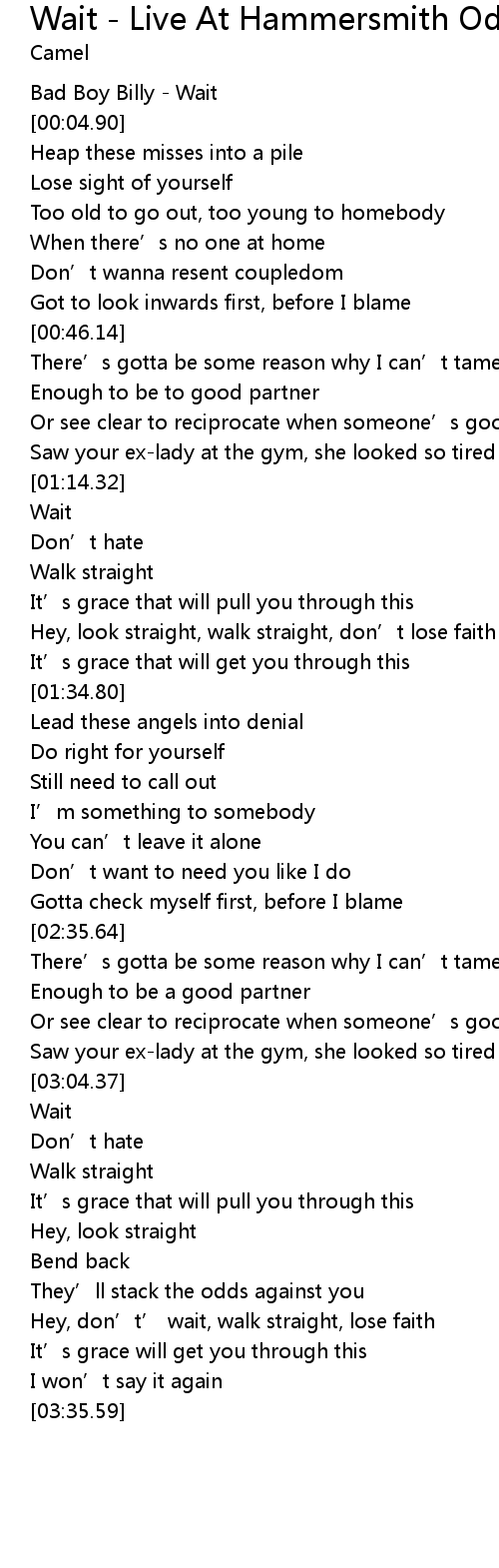 | [03:21.76] | Hey, don' t' wait, walk straight, lose faith |