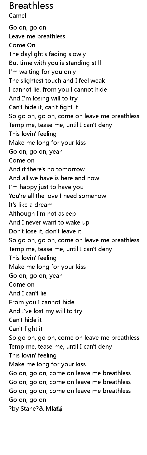 | [03:15.00] | Go on, go on, come on leave me breathless |