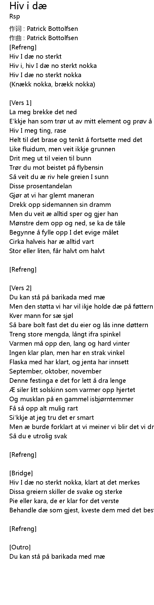 | Hiv i, hiv I dæ no sterkt nokka | |