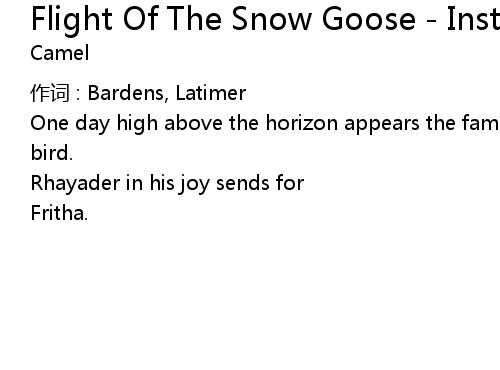 | Song | Flight Of The Snow Goose - Instrumental Album Version |