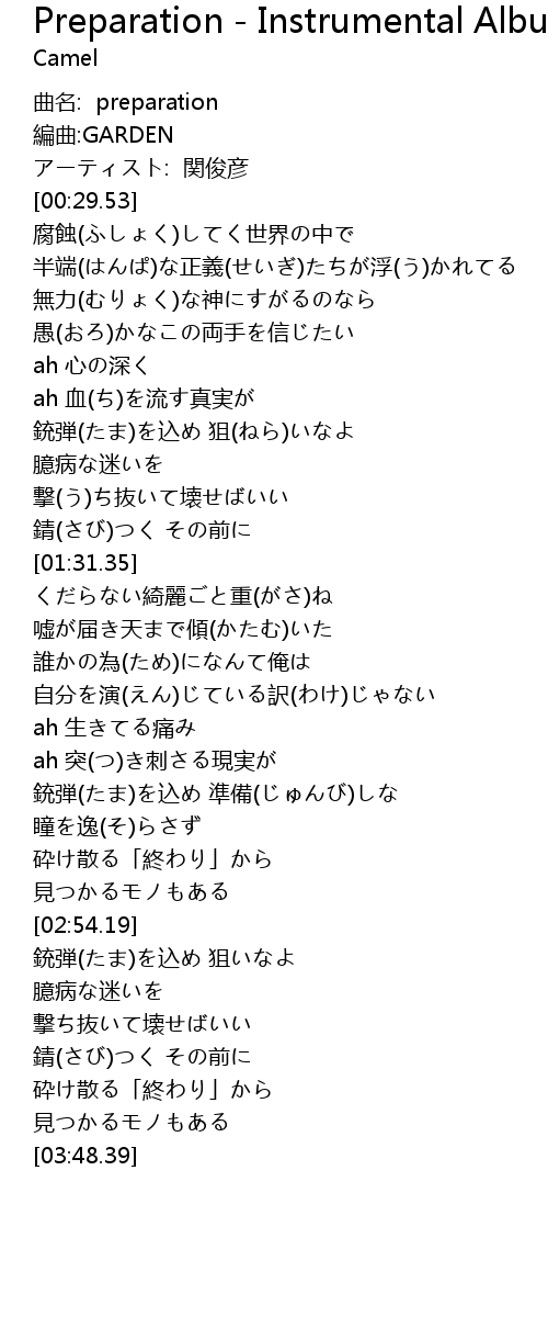 | [00:03.65] | 曲名: preparation |