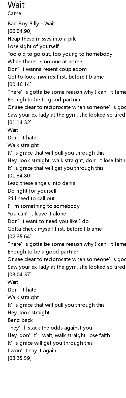 | [00:00.00] | Bad Boy Billy - Wait |