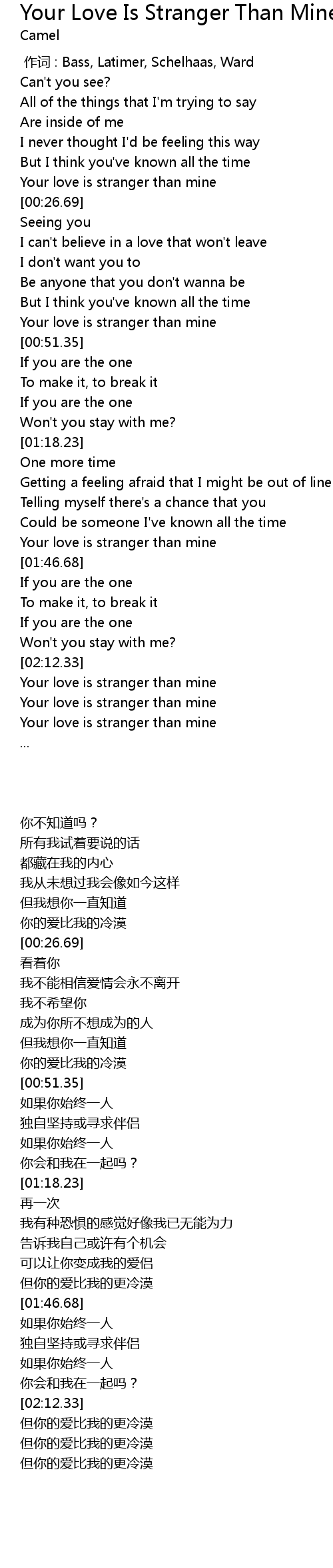 | [00:36.20] | I can' t believe in a love that won' t leave |