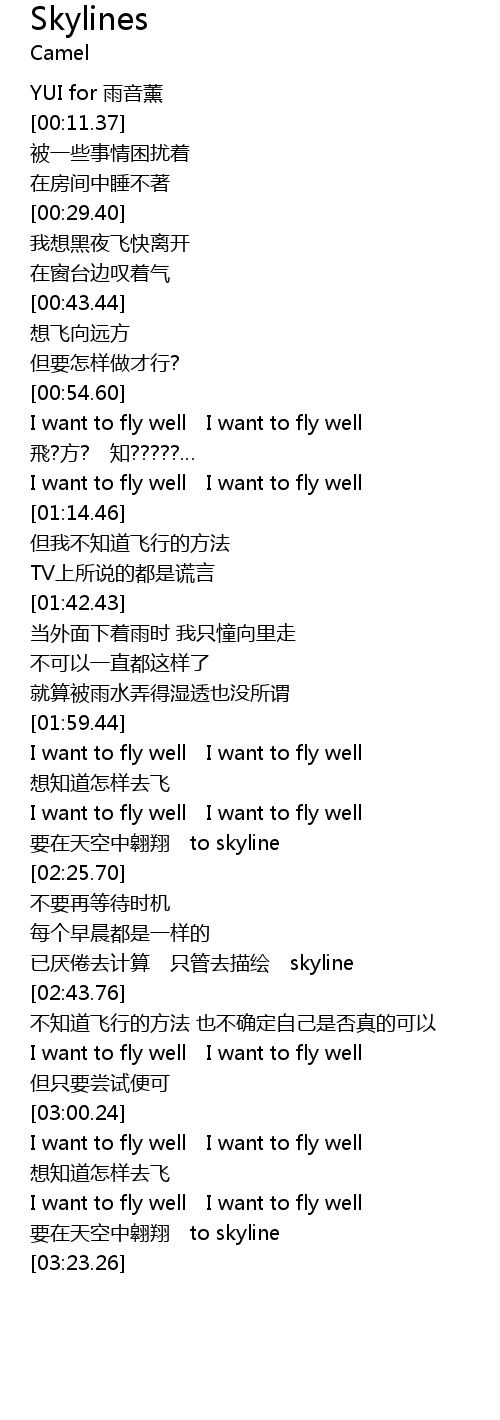| [03:13.65] | 要在天空中翱翔 to skyline |