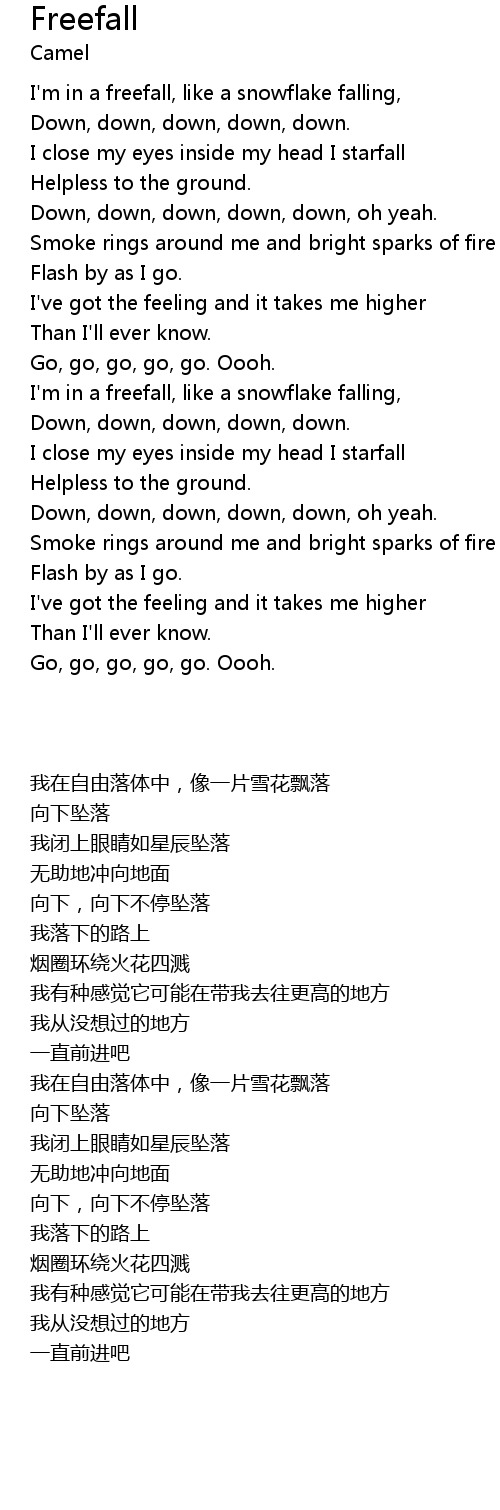 | [01:22.51] | I'm in a freefall, like a snowflake falling, |