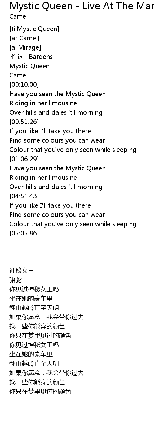 | [04:59.29] | Colour that you've only seen while sleeping |