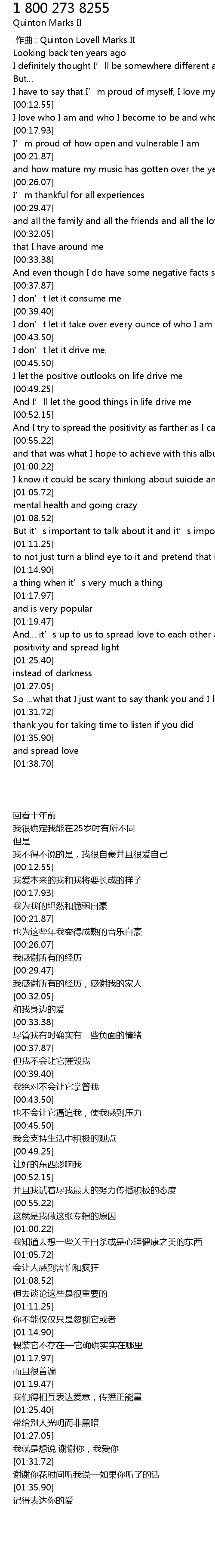 | [00:00.000] | zuò qǔ : Quinton Lovell Marks II |