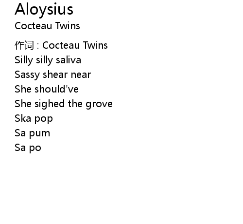 | 作词 : Cocteau Twins | |