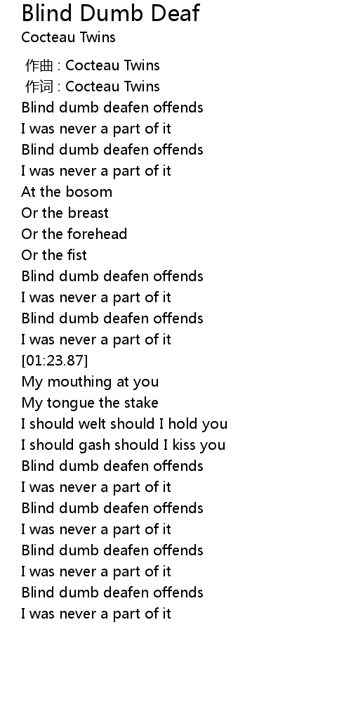 | [00:01.00] | zuò cí : Cocteau Twins |