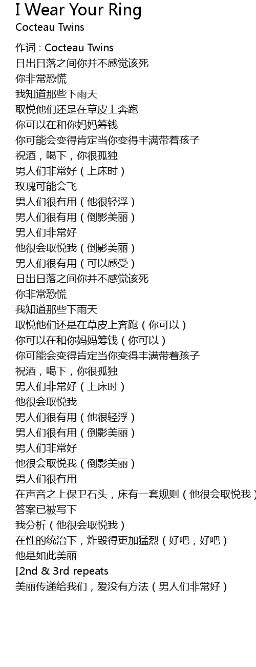 | [2nd & 3rd repeats only] | 美丽传递给我们,爱没有方法(男人们非常好) |