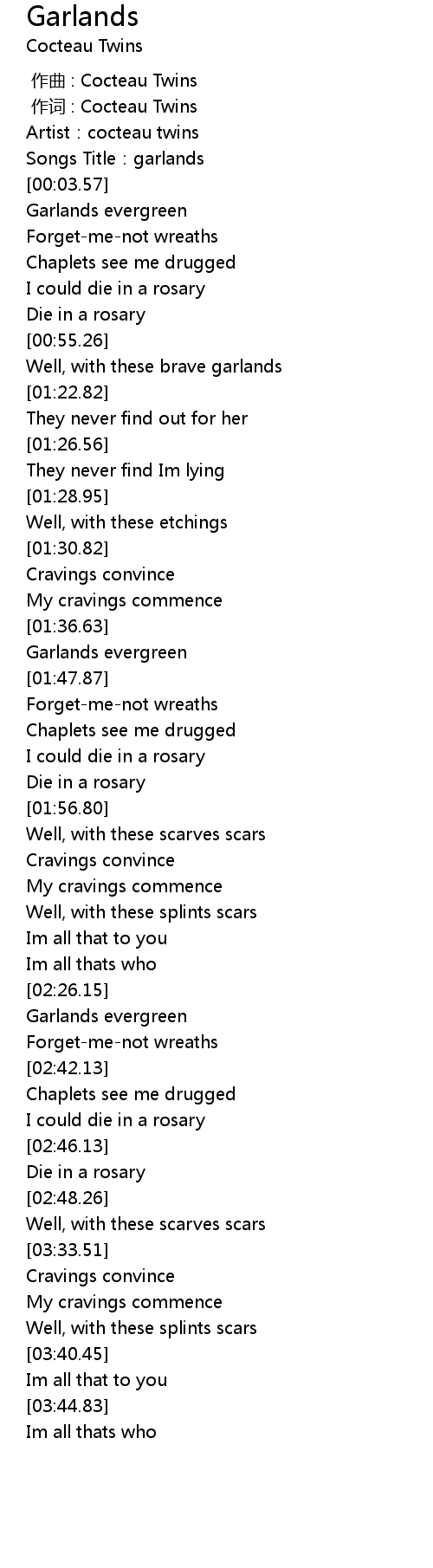 | [00:00.00] | zuo qu : Cocteau Twins |
