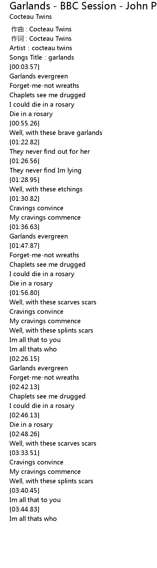 | [00:00.00] | 作曲 : Cocteau Twins |