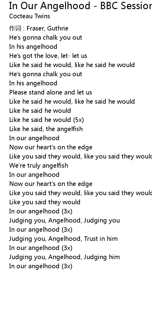 | Song | In Our Angelhood - BBC Session - Kid Jensen, 10th October 1983 |