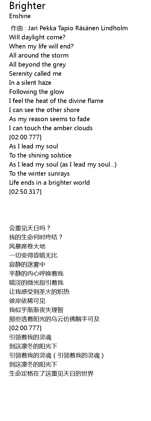 | [00:00.000] | 作曲 : Jari Pekka Tapio Räsänen Lindholm |