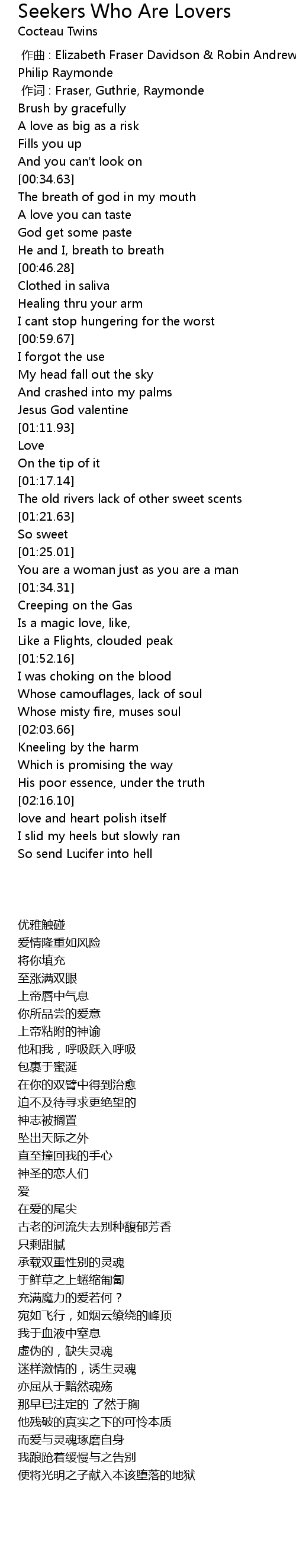 | [00:00.00] | zuò qǔ : Elizabeth Fraser Davidson Robin Andrew Guthrie Simon Philip Raymonde |