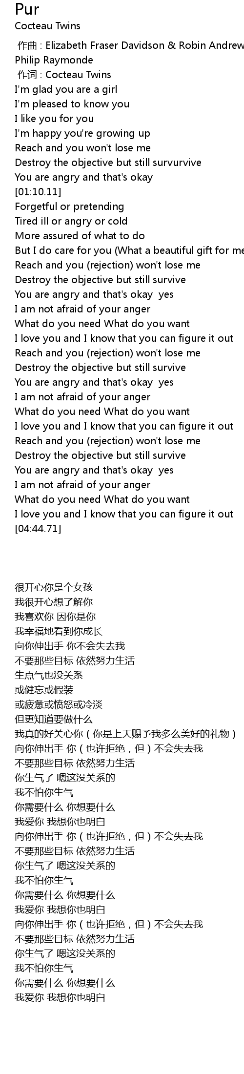 | [00:01.00] | 作词 : Cocteau Twins |