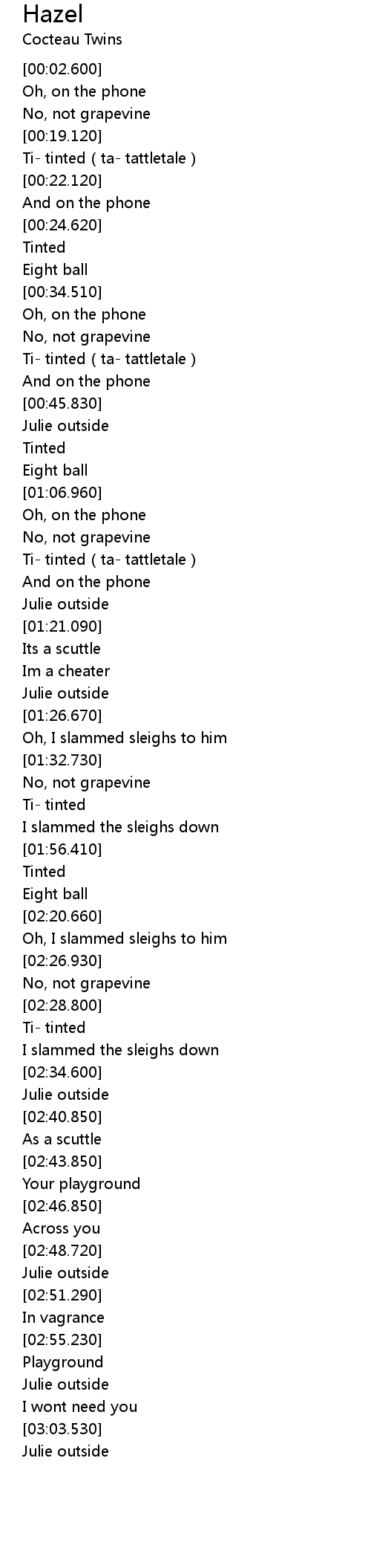 | [00:20.180] | Ti- tinted(ta- tattletale) |