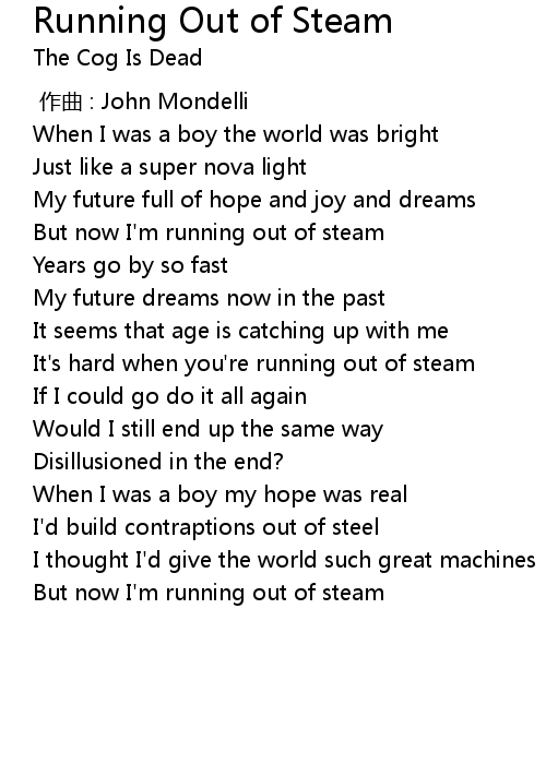 | [01:25.63] | It' s hard when you' re running out of steam |