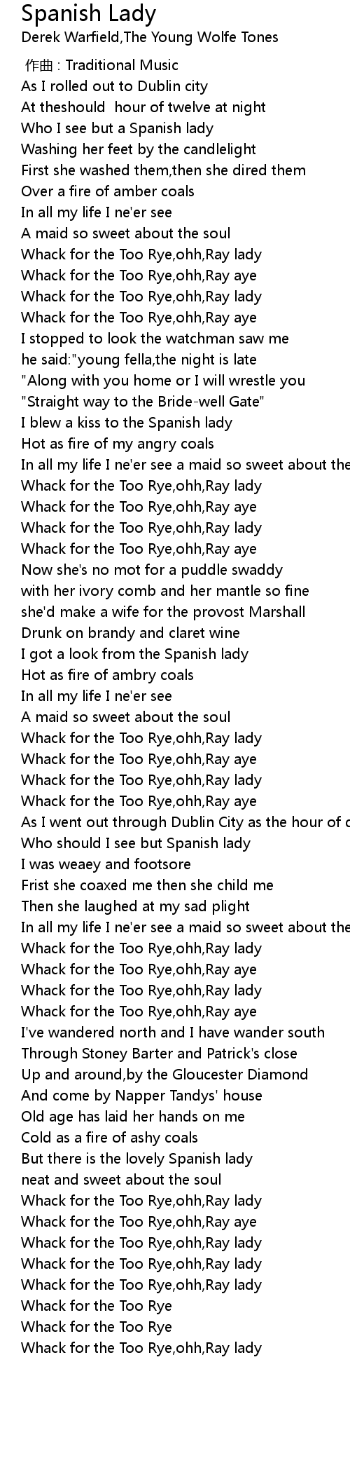 | [00:23.943] | Who I see but a Spanish lady |