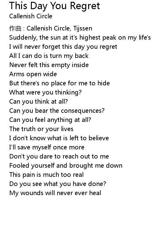 | Song | This Day You Regret |