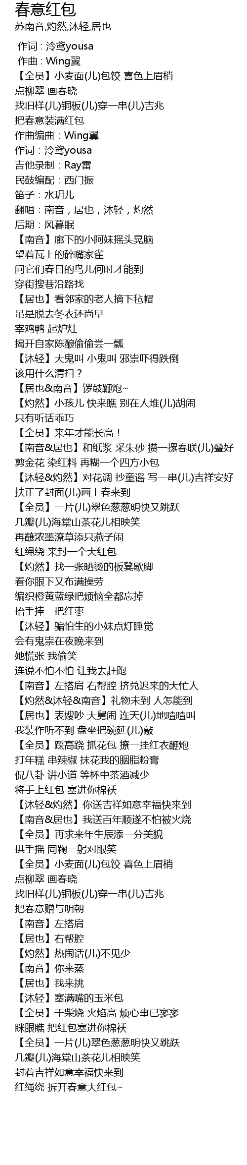 | [04:32.81] | 红绳绕 拆开春意大红包~ |