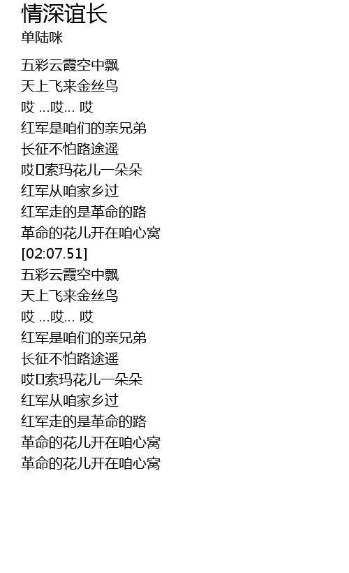 | [02:42.39] | 红军是咱们的亲兄弟 |