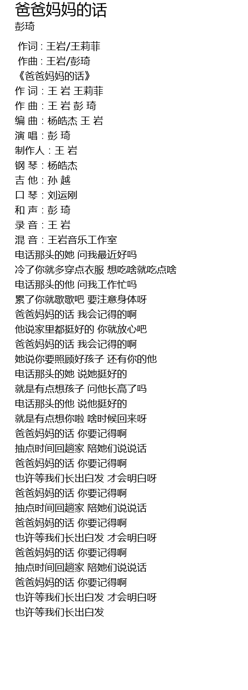 | [00:05.366] | 《爸爸妈妈的话》 |